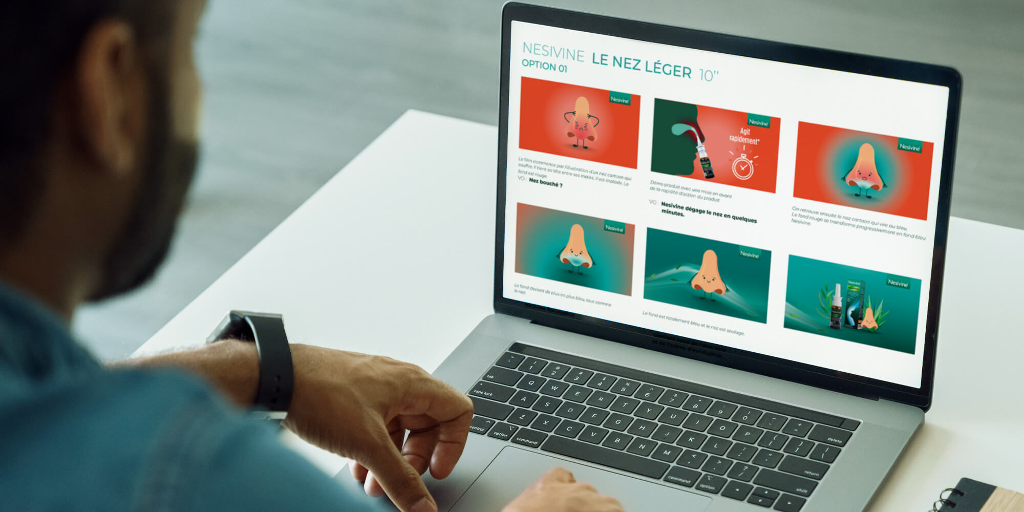 The goal? Quickly setting up the scene of the blocked nose context and transmitting the strong messages of quick & long lasting effects as well as very pleasant smell in a short 10 seconds motion!